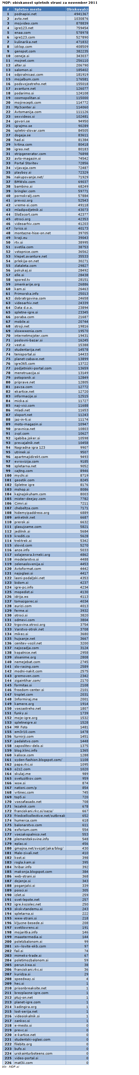 Tabela - obiskanost MOP november 2011 (pdf, sl)>>